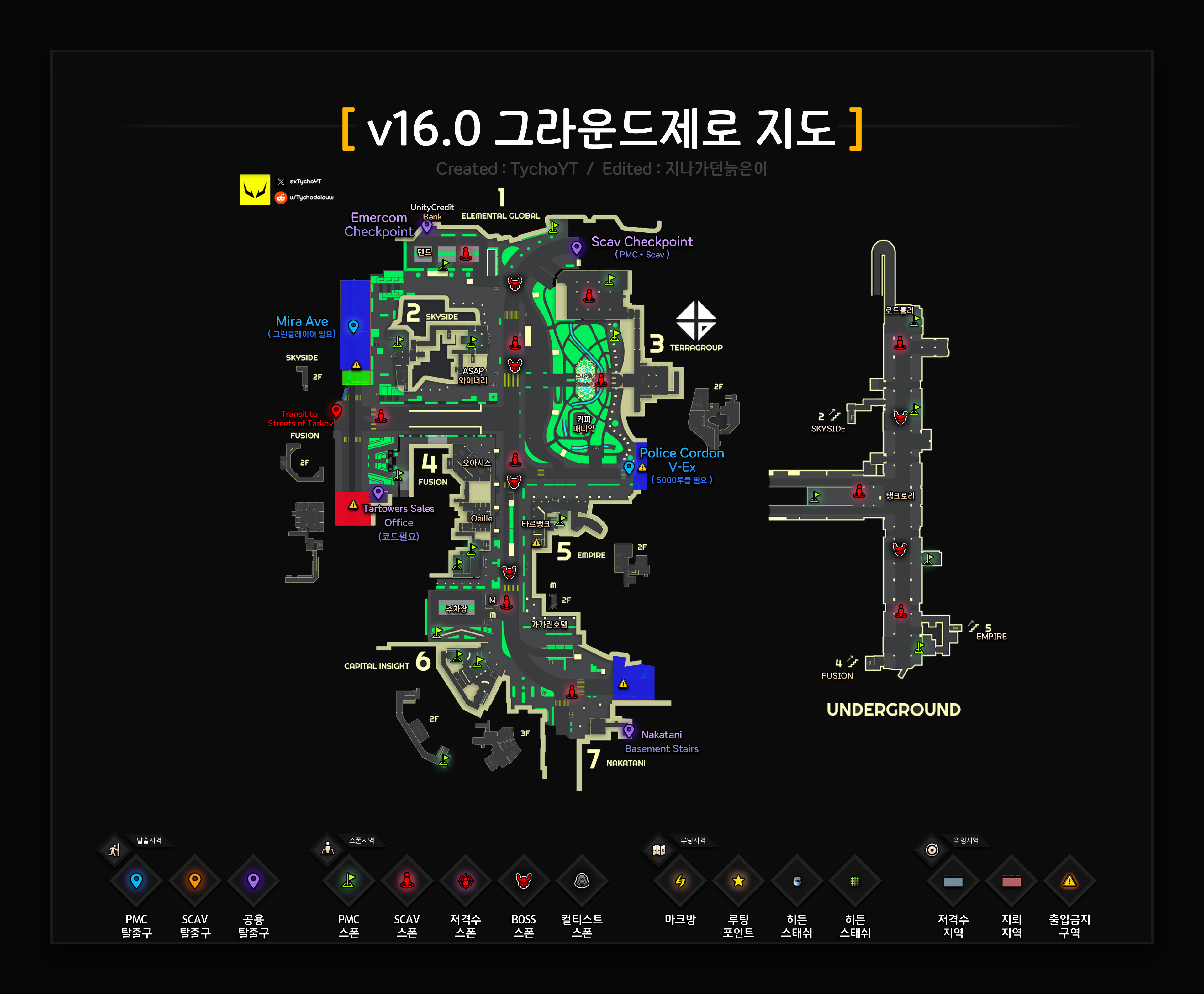 - 아래 그라운드제로 지도를 참조하여, 빠른 진입경로 및 탈출 경로 계획 후 이동